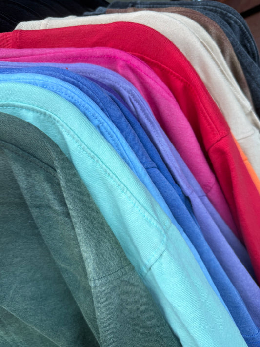 Explore our collection of solid color tees that combine effortless style with unbeatable comfort. Perfect for layering or wearing on their own, these soft, oversized shirts come in a variety of colors and sizes to suit every look. Whether you’re dressing up or keeping it casual, our solid tees are a wardrobe essential designed for all-day wear.