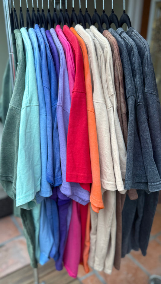 Explore our collection of solid color tees that combine effortless style with unbeatable comfort. Perfect for layering or wearing on their own, these soft, oversized shirts come in a variety of colors and sizes to suit every look. Whether you’re dressing up or keeping it casual, our solid tees are a wardrobe essential designed for all-day wear.